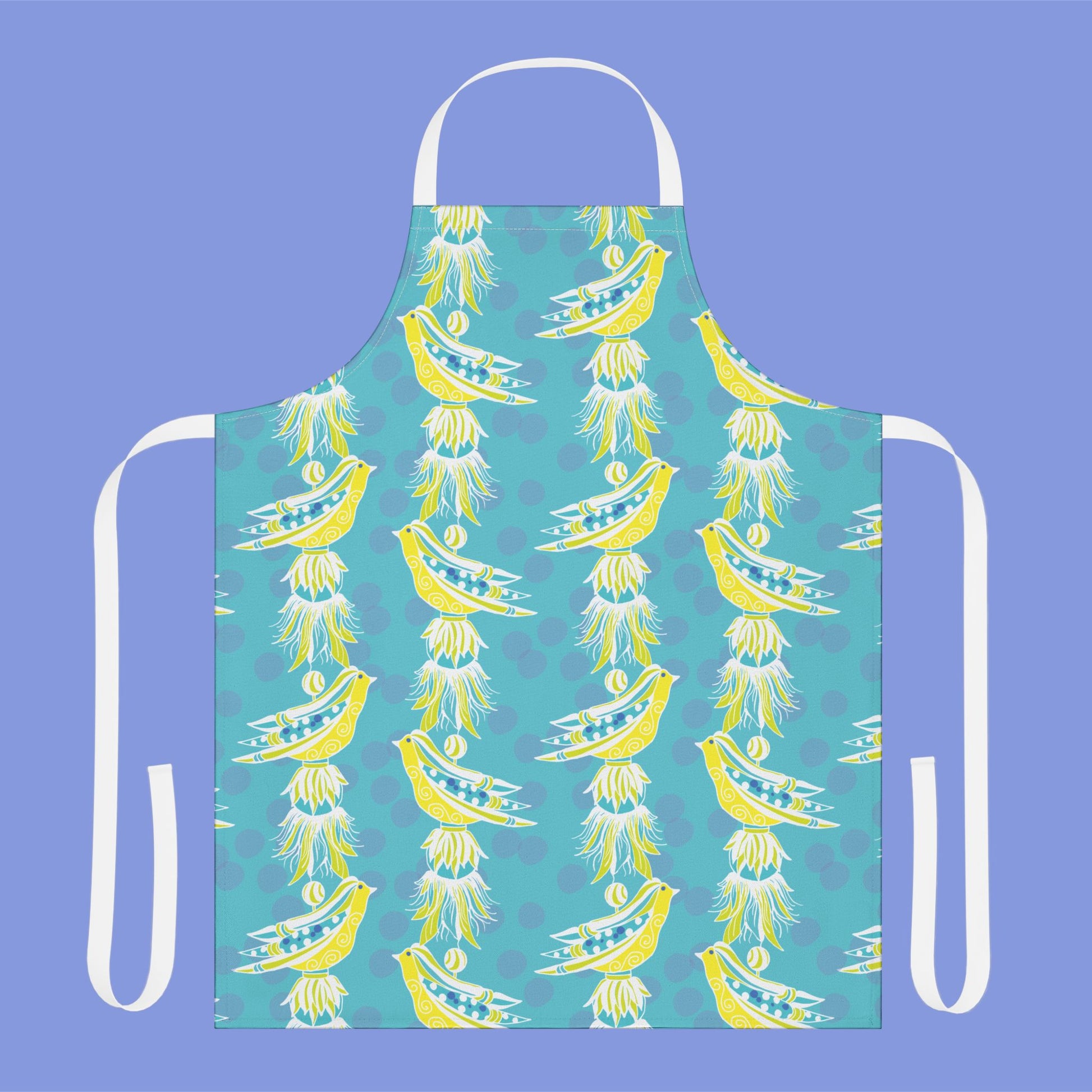 Bright Turquoise Tassel Bird Pattern Apron - Colorful Cooking Gift, Kitchenware for Chefs, Stylish BBQ Accessory, Home Cooking Fun, Unique Gift Idea
