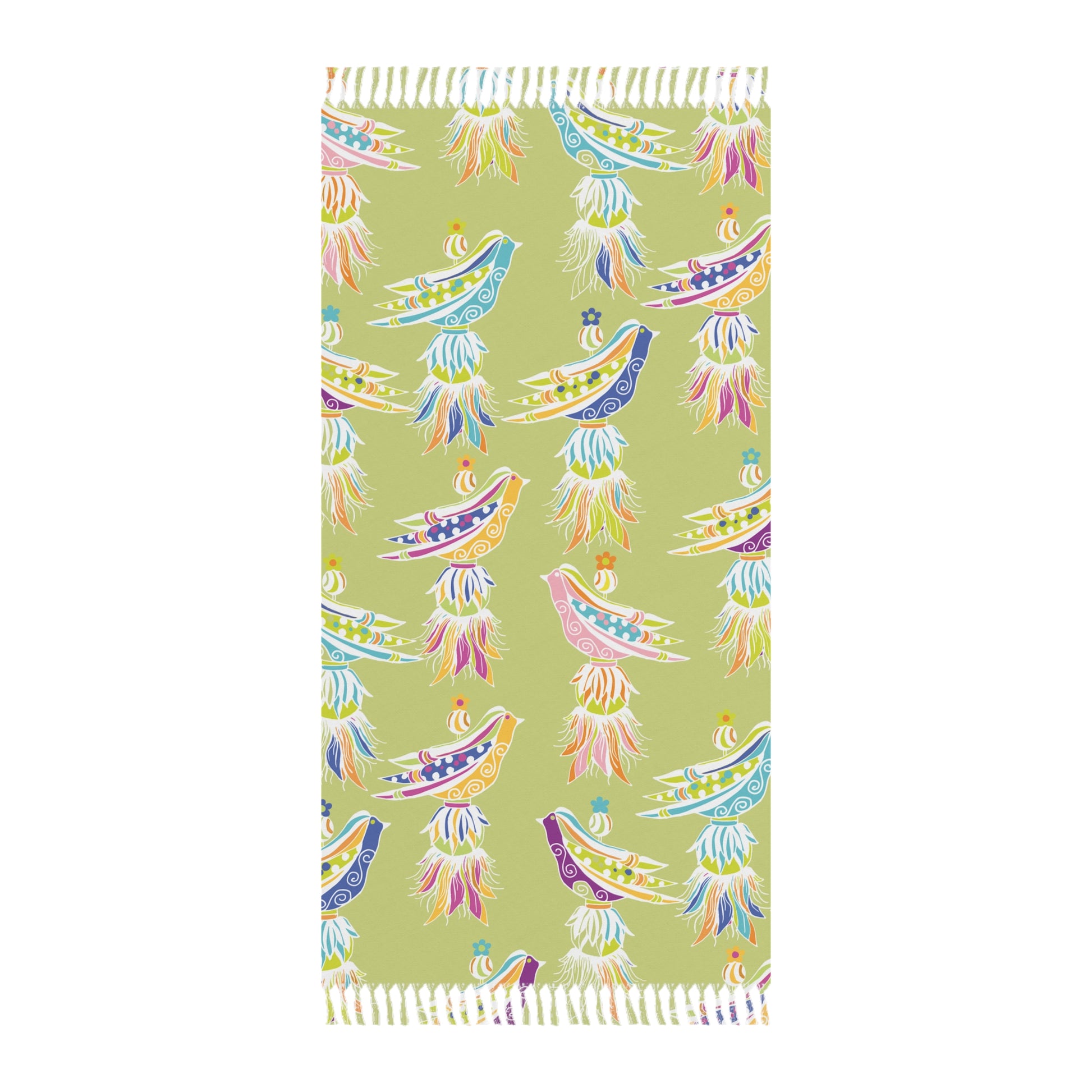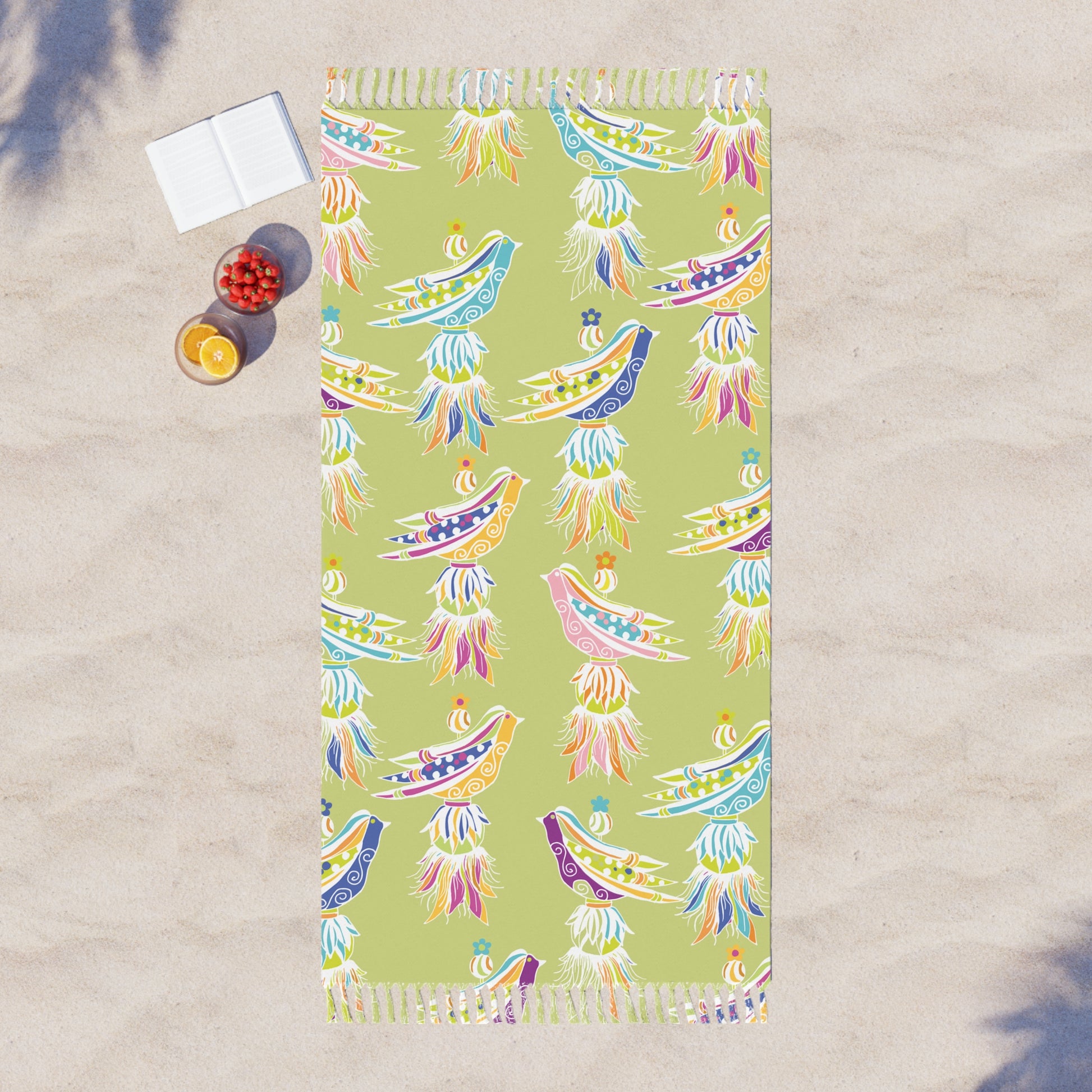French Tassel Bird Boho Beach Towel, Vibrant Bohemian Bathing Accessory, Summer Picnic Essential, Poolside Comfort, Coastal Decor, Travel Blanket