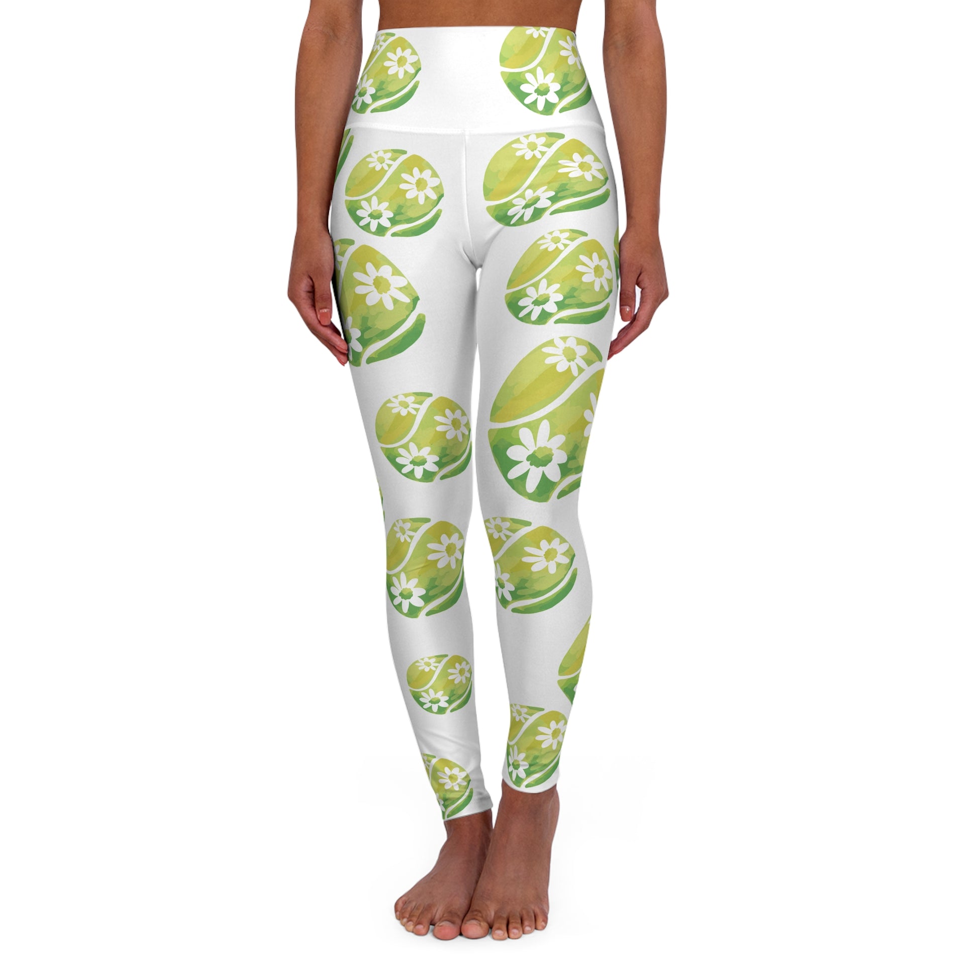 High Waisted Tennis Daisy Floral Yoga Leggings, Comfortable Workout Pants, Activewear for Women, Trendy Athleisure, Gift for Fitness Lovers