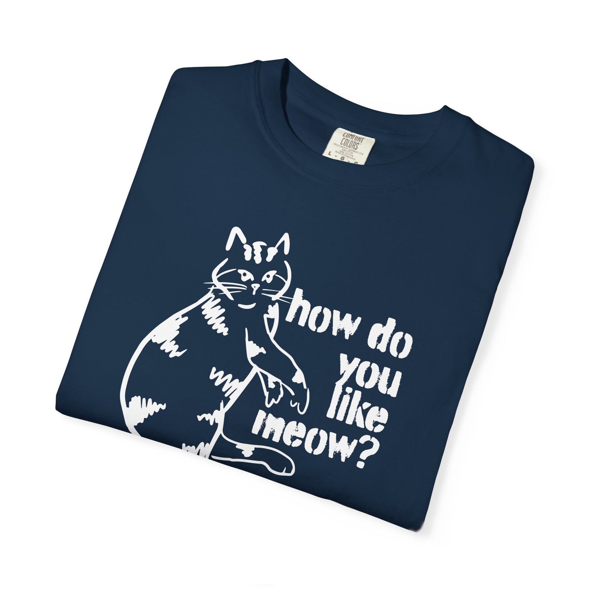 How Do You Like Meow? Garment-Dyed T-Shirt with Humorous Cat Design, Comfortable Everyday Wear, Perfect for Casual Outings, Gifts for all Cat Lovers, Spring Fashion, Relaxed Fit