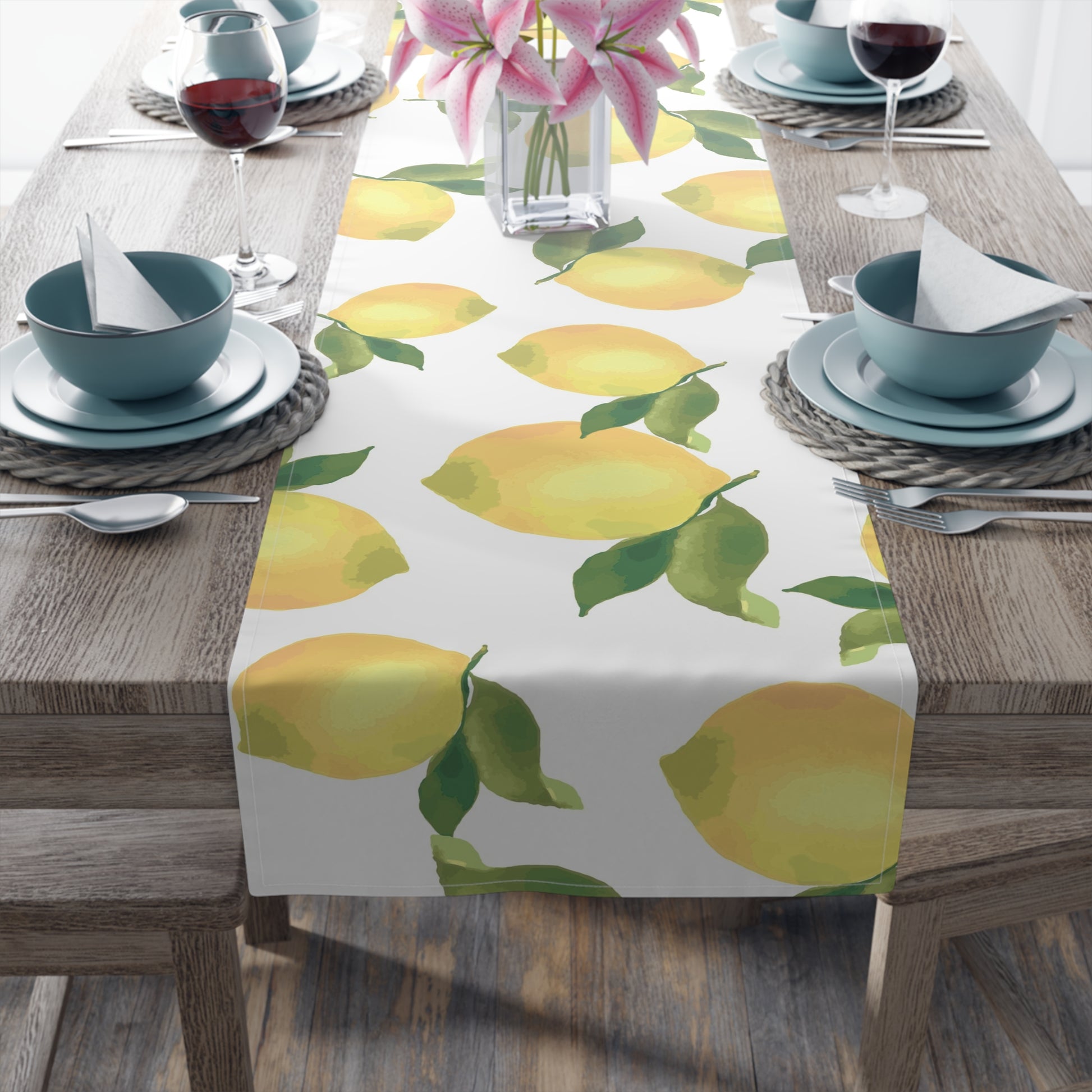 Lemon Blossom Table Runner - Farmhouse Home Decor, Dining Table Decoration, Spring Dinnerware, Fresh Kitchen Accent