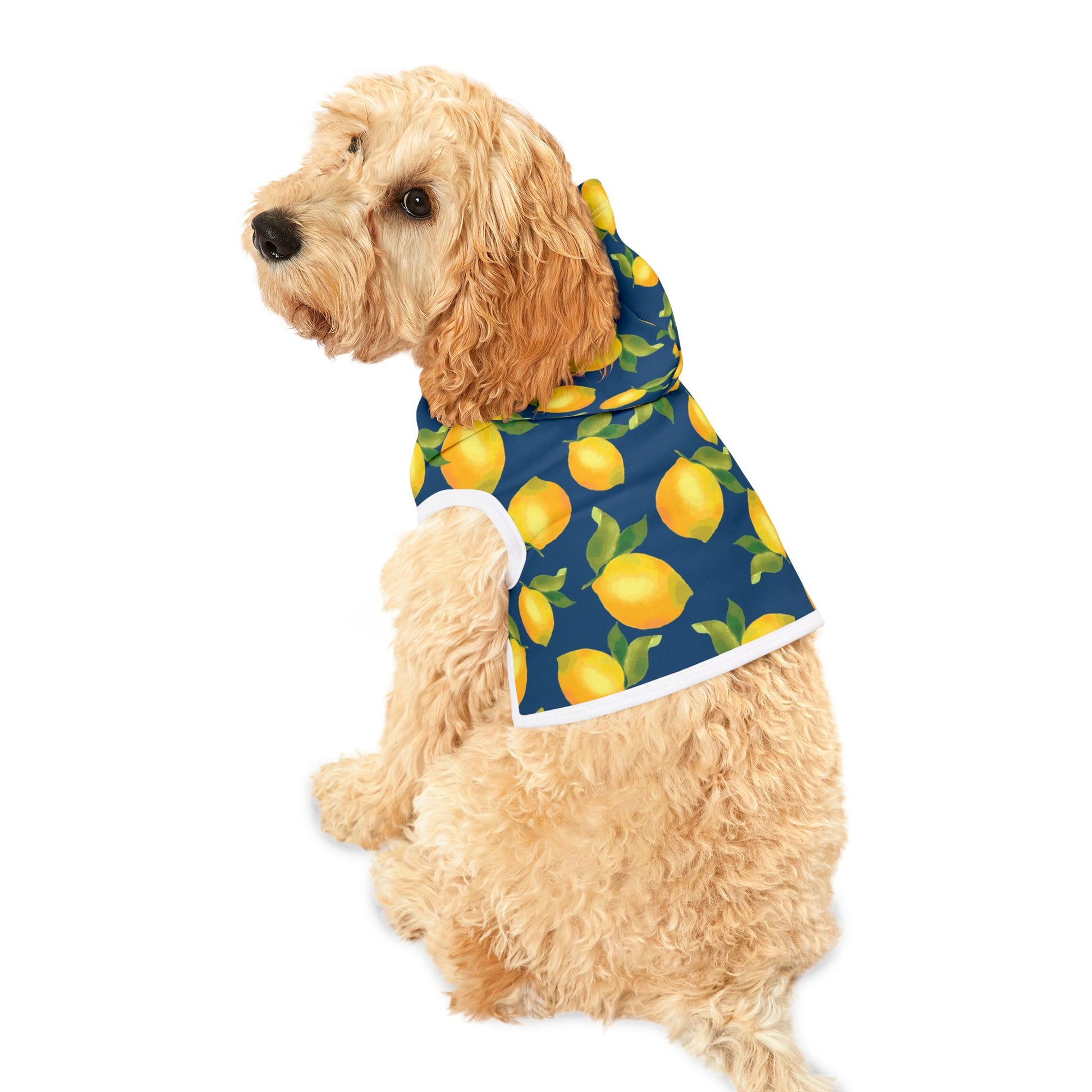 This adorable Pet Hoodie is designed to make your furry friend a stylish and cozy companion. With a delightful lemon print, it brings a cheerful vibe that brightens any day. Perfect for casual walks or lounging at home, this hoodie is made from 100% soft, durable polyester, ensuring your pet stays comfortable and trendy. Available in seven sizes to fit pets of all shapes, this hoodie is a must-have for pet lovers who appreciate fashion and functionality. Ideal for holidays like Easter or summer outings, it makes a great gift for pet owners looking to celebrate their furry friends in style. Let your pet enjoy the comfort and charm of this unique hoodie!