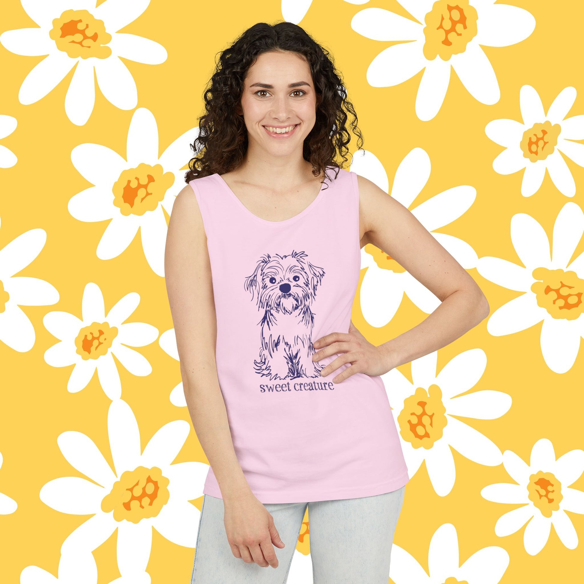 Show your love for your adorable shih tzus with this sweet creatures design tank top. Perfect for dog lovers looking for a cute and charming addition to their wardrobe. Ideal for casual summer outings, dog park visits, and lounging at home.