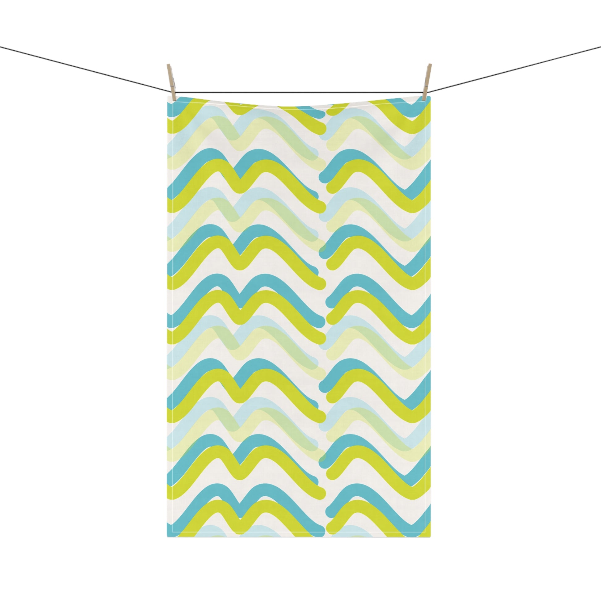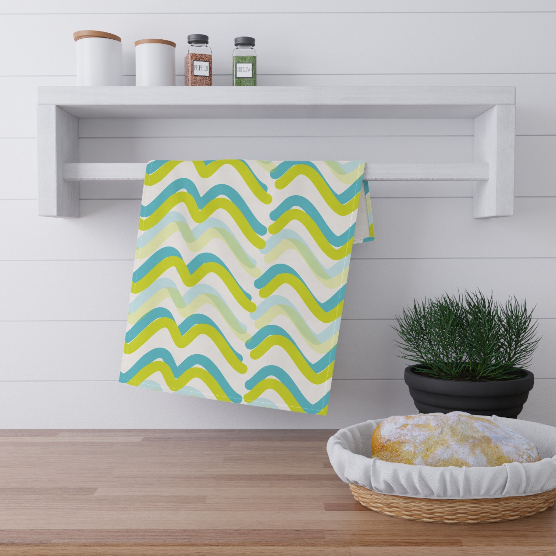 Vibrant Wave Pattern Tea Towels, Kitchen Decor, Gifts for Home, Summer BBQ Essentials, Eco-Friendly Cotton Laundry