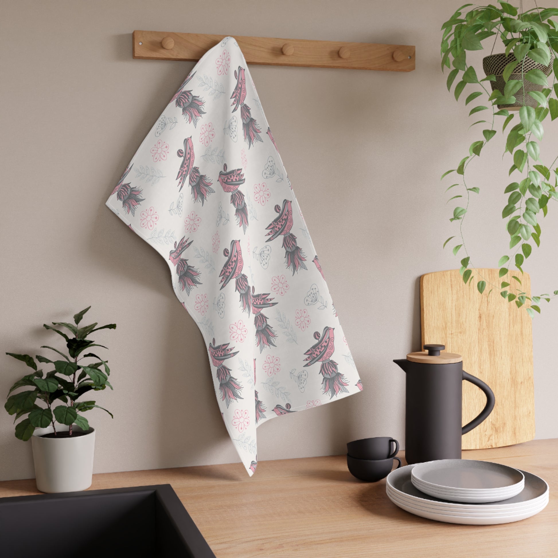 Whimsical Bird Tea Towels - Charming Kitchen Decor, Gift for Bird Lovers, Floral Tea Towels, Home & Living, Eco-Friendly Kitchen Linens